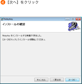 フォルダ(F) C:¥Program Files¥TANIITA Coporation¥ RelayKey¥になっていることを確認し【次へ】 【次へ】をクリック